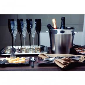 - utensílio totalmente feito em aço inox e altamente durável.- Design moderno, proporciona requinte ao compor a mesa.- Por conta do design pode ser como peça decorativa, além de ser uma ótima opção de presente.- Próprio para uso em buffet?s ou eventos.- Também atende ao segmento da linha empresarial, hotéis e restaurantes.- Peça com acabamento do aço em fosco e borda em brilho, valorizando a peça.