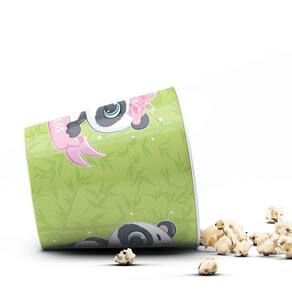 Balde de Pipoca, de 3,5 litros de capacidade, feito em plástico injetado com personalização em adesivo impressão digital e película transparente para proteção, pode-se lavar normalmente.
