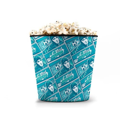 Balde de Pipoca com capacidade aproximada de 3,5 Litros, feito de plástico rigido injetado e personalizado 360 graus com adesivo especial e película protetica fosca.