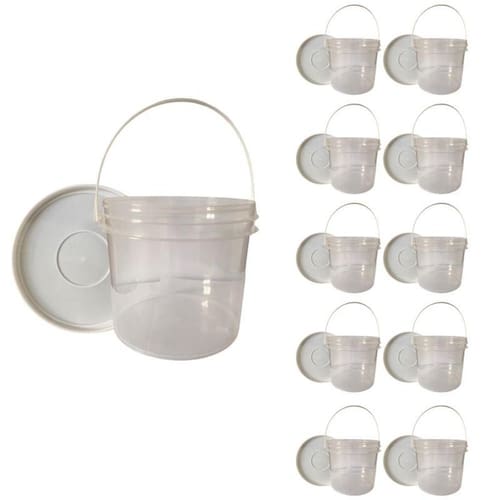 10 x Baldes de 2.2 Litros Transparente com Alça Branca