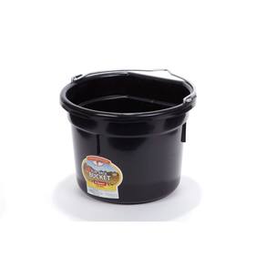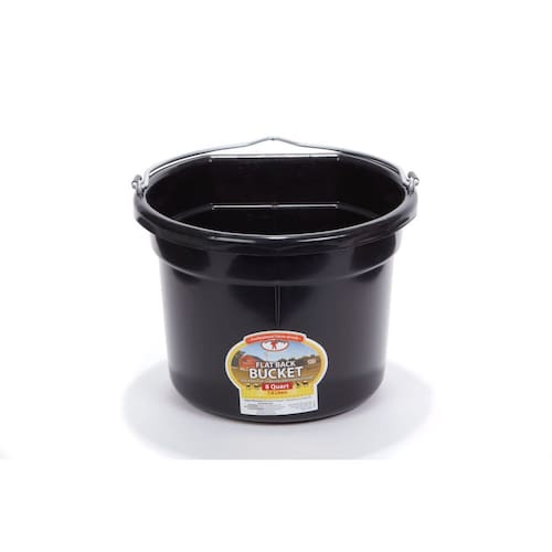 Balde de ração animal de plástico com encosto plano Little Giant® | Balde de ração para animais com alça de metal | Suprimentos de alimentação e rega para barracas de cavalos (preto, 8 litros)