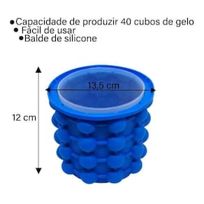 O Balde Gelo Silicone veio para revolucionar a maneira de fazer gelo, com ele vou poupará espaço no seu congelador Substituindo até 10 formas de gelo tradicionais. Com ele, não vai ser necessário encher o freezer de forminhas e ficar sem espaço. Ele armazenará até 40 cubos de gelo ou cerca de 120 bolinhas de gelo dentro do baldinho. Sua tampa conserva o gelo por mais tempo. Capacidade 1,5 L