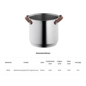 Dimensões: Ø 22,5 cm x 19 cm (a). Capacidade: 4,5 Litros. Peso: 750g Cores: Inox e Marrom