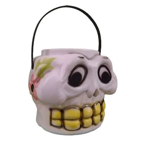 Este Balde é ideal para armazenar doces e guloseimas, proporcionando um toque divertido e temático para suas comemorações. Com design de caveira mexicana florida, ele se destaca como um item decorativo e funcional para festas temáticas e celebrações de Halloween.