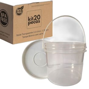 Balde transparente 2.2 litros com tampa lacre de segurança 100% bpa free - 30 peças Comercializamos o balde vazio e sem impressão O titulo e o rótulo serve apenas como sugestão de usabilidade - embalagens com boa resistência em baixas e altas temperaturas e aprovadas para contato com alimentos. - balde plásticos rígidos desenvolvidos e fabricados especificamente para a indústria alimenticia, quimica e farmaceutica - as tampas tem ótimo fechamento e são de fácil colocação, seu desenho permite um empilhamento seguro Todos os processos são feitos em sintonia com as suas exigências, tanto de segurança, durabilidade e estética. Nesta compra voce vai receber: 30 x baldes transparente com alça plástica com capacidade de 2.2 litros 30 x tampas plastica branca com lacre de segurança Balde: Diâmetro interno superior 156.50 mm Diâmetro interno inferior 137 mm Diâmetro externo superior 161.40 mm Diâmetro externo inferior 140 mm Diâmetro externo máximo 166.40 mm Altura interna 136 mm Altura externa 140 mm Altura com a tampa 141.60 mm Espessura média lateral 0.75 mm Espessura média no fundo 0.80 mm Peso 71 gramas Tampa: Diâmetro externo 169 mm Altura 15.20 mm Espessura média de parede 0.75 mm Peso 23 gramas Material pp branco Alça: Comprimento: 350 mm Espessura media parede: 0,85 mm O balde transparente de 2.2 litros para alimento com tampa lacre é um recipiente projetado para armazenar alimentos em grandes quantidades. A transparência do balde permite visualizar facilmente o conteúdo interno, tornando mais fácil e rápido encontrar o que precisa. Ele é fabricado em plástico resistente, pp polipropileno de alta densidade, que é seguro para o contato com alimentos. A forma redonda do balde permite que ele seja empilhado facilmente, o que economiza espaço no armazenamento. O tamanho de 2.2 litros é adequado para armazenar alimentos em grande quantidade, tornando-o uma opção popular para uso comercial em restaurantes, padarias, indústrias alimentícias, entre outros. Seu volume real abaixo da tampa é de 2.5 litros podendo chegar em 2.6 litros sem tampa até a borda do balde. A tampa lacre é uma característica importante deste balde, pois mantém o conteúdo fresco e protegido de contaminantes externos. Possui um sistema de encaixe que proporciona um fechamento seguro e hermético, impedindo a entrada de ar, poeira, insetos e outros elementos que possam prejudicar a qualidade do alimento. Além disso, o balde de 2.2 litros transparente possui uma tampa com lacre de segurança que é facilmente higienizável, podendo ser lavado com água e sabão e diversas vezes. Isso o torna uma opção econômica e sustentável para o armazenamento de alimentos. Alguns dos principais benefícios do balde 2.2 litros transparente para alimento com tampa lacre incluem: - alta capacidade de armazenamento: com capacidade de 2.2 litros, este balde é ideal para armazenar grandes quantidades de alimentos. - proteção contra contaminação: a tampa com lacre de segurança é uma barreira eficaz contra insetos, poeira e outros contaminantes que possam prejudicar a qualidade do alimento. - facilidade de transporte: o balde é leve e fácil de transportar, permitindo que o alimento seja movido de um local para outro com facilidade. Em resumo, o balde transparente de 2.2 litros retangular para alimento com tampa lacre é um recipiente prático e seguro para o armazenamento de alimentos em grandes quantidades. Na sua cor transparente, permite visualizar facilmente o conteúdo interno, tornando mais fácil e rápido encontrar o que precisa. Não espere mais para garantir a durabilidade e a frescura dos seus alimentos adquira agora o balde transparente 2.2l com tampa lacre e tenha mais praticidade e segurança