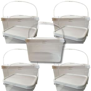 Balde retangular transparente 2. 4 litros com tampa lacre de segurança 100% bpa free - 05 peças