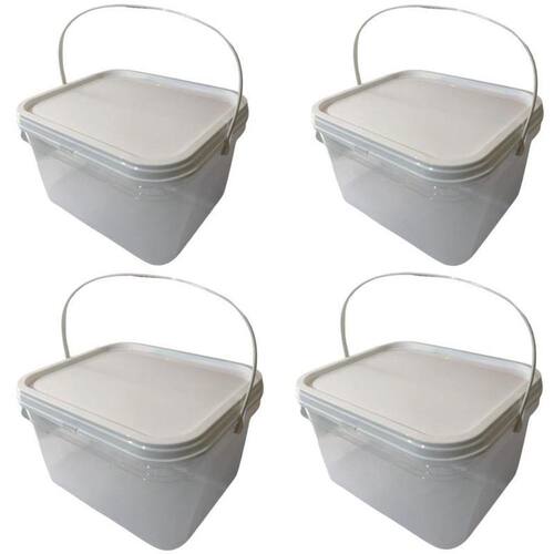 Balde retangular transparente 2.4 litros com tampa lacre de segurança 100% bpa free - kit 04 peças nastripack