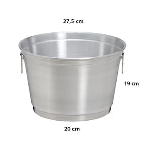 mantenha as bebidas sempre geladas, deixando-as ainda mais gostosas. Produto desenvolvido por alumínio polido de alta qualidade, é durável, resistente ao desgaste, antienvelhecimento, não amassa e nem fura com facilidade e pode ser utilizado por um longo tempo. Nosso balde foi projetado visando à boa conservação de suas bebidas geladas, possibilitando a fácil locomoção de um lugar ao outro, sem precisar ficar indo a geladeira. Prático e eficiente, é ideal para as suas festas, churrascos ou reuniões, sirva seus convidados ou clientes com qualidade e elegância. Informações técnicas: