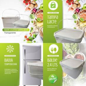 Balde retangular transparente 2.4 litros nastripack com tampa lacre de segurança 100% bpa free Comercializamos o balde vazio e sem impressão. O titulo e o rótulo serve apenas como sugestão de usabilidade Nesta compra você vai receber: 03 x baldes retangulares transparente com alça plástica com capacidade de 2.4 l 03 x tampas plástica branca retangulares com lacre de segurança Embalagens com excelente resistência a baixas e altas temperaturas, aprovadas para contato com alimentos. Baldes plásticos rígidos, desenvolvidos e fabricados especificamente para as indústrias alimentícia, química e farmacêutica As tampas têm ótimo fechamento e são de fácil colocação, permitindo um empilhamento seguro. Todos os processos são realizados em sintonia com suas exigências de segurança, durabilidade e estética. Especificações do balde: Peso com alça : 0,74g Altura externa sem tampa : 110 mm Altura com tampa: 114 mm Diâmetro interno superior: 153,50 mm Diâmetro externo superior: 157,40 mm Diâmetro anel externo: 164,40 mm Diâmetro externo inferior: 140 mm Espessura média lateral: 0,75 mm Espessura média fundo: 0,80 mm Especificações da tampa: Diâmetro externo: 189 mm Altura: 14 mm Espessura média da parede: 0,7 mm Peso: 30 gramas Especificações da alça: Comprimento: 350 mm Espessura média da parede: 0,85 mm O balde retangular transparente de 2.4 litros com tampa lacre é um recipiente projetado para armazenar alimentos em grandes quantidades. A transparência do balde permite visualizar facilmente o conteúdo interno, facilitando encontrar o que precisa rapidamente. Fabricado em polipropileno pp de alta densidade, o balde é seguro para contato com alimentos. Sua forma retangular permite empilhamento fácil, economizando espaço no armazenamento. Com capacidade de 2.4 litros, é ideal para uso comercial em restaurantes, padarias, indústrias alimentícias, entre outros. O volume real abaixo da tampa é de 2.4 litros, podendo chegar a 2.5 litros sem tampa até a borda do balde. A tampa lacre mantém o conteúdo fresco e protegido de contaminantes externos, com um sistema de encaixe que proporciona fechamento seguro e hermético, impedindo a entrada de ar, poeira, insetos e outros elementos prejudiciais à qualidade do alimento. Além disso, a tampa com lacre de segurança é facilmente higienizável, podendo ser lavada com água e sabão e diversas vezes, tornando-se uma opção econômica e sustentável para armazenamento de alimentos. Principais benefícios: Alta capacidade de armazenamento: com capacidade de 2.4 litros, é ideal para grandes quantidades de alimentos. Proteção contra contaminação: a tampa com lacre de segurança é uma barreira eficaz contra insetos, poeira e outros contaminantes. Facilidade de transporte: o balde é leve e fácil de transportar, permitindo mover o alimento com facilidade. Em resumo, o balde transparente retangular de 2.4 litros com tampa lacre é um recipiente prático e seguro para armazenamento de alimentos em grandes quantidades. Sua transparência permite visualizar facilmente o conteúdo interno, facilitando o uso no dia a dia. Não espere mais para garantir a durabilidade e frescura dos seus alimentos adquira agora o balde transparente retangular de 2.4l com tampa lacre e tenha mais praticidade e segurança. Balde retangular transparente com tampa,balde plástico 2.4 litros,balde alimentício com tampa lacre,balde bpa free 2.4 litros,balde empilhável para alimentos,balde resistente altas e baixas temperaturas,balde seguro para alimentos,balde com lacre de segurança,balde durável para armazenamento,balde transparente para visualização fácil,balde para restaurantes e padarias,balde para indústria alimentícia,balde para armazenar grandes quantidades de alimentos,balde para transporte de alimentos,balde para uso comercial,balde plástico empilhável,balde retangular com alça,balde transparente com tampa hermética,balde plástico reutilizável,balde 2.4 litros com tampa,balde bpa free