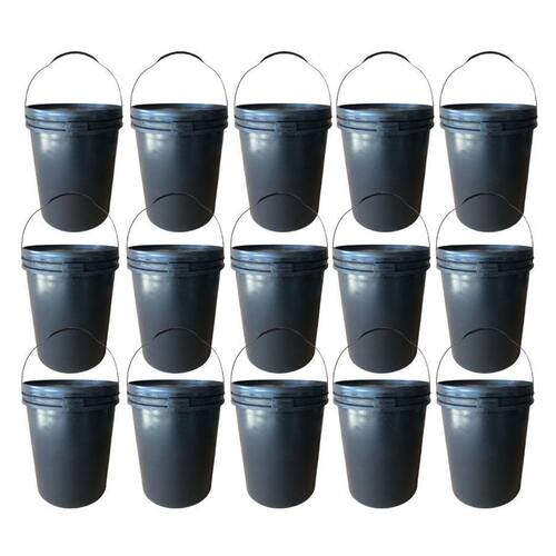 15 x Baldes Pretos de 20 Litros com Alça Plástica 15 x Tampas Pretas com Lacre de Segurança
