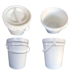 - 04 x Baldes Brancos de 12 L com Alça Plástica - 04 x Tampas Rosca 12 L com Lacre de Segurança