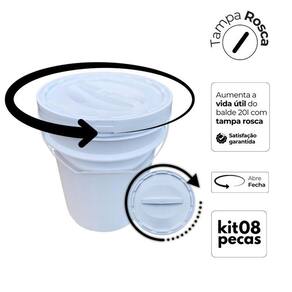 Balde Plástico 20 L Tampa Rosca Para Pipoca - Kit 8 Pçs