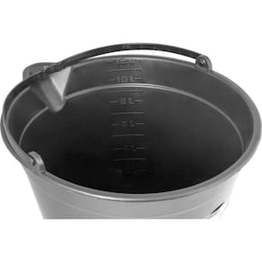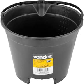 Por ser plástico, torna-se mais leve. Possui pegador no fundo do balde e bico, proporcionando maior facilidade durante o trabalho e no momento de despejar o concreto..