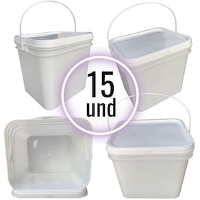 Balde retangular 3.6 litros com tampa lacre de segurança 100% bpa free - 15 peças Comercializamos o balde vazio - o titulo serve apenas como sugestão de usabilidade - embalagens com boa resistência em baixas e altas temperaturas e aprovadas para contato com alimentos. - balde plásticos rígidos desenvolvidos e fabricados especificamente para a indústria alimenticia, quimica e farmaceutica - as tampas tem ótimo fechamento e são de fácil colocação, seu desenho permite um empilhamento seguro na câmera fria. Todos os processos são feitos em sintonia com as suas exigências, tanto de segurança, durabilidade e estética. Nesta compra voce vai receber: 15 x baldes retangulares branco com capacidade de 3.6 litros 15 x tampas plastica retangulares branca com lacre de segurança Balde: Valor nominal 3.6 litros Peso balde com tampa e alça 117 gramas aproximado Altura externa sem tampa 172mm aproximado Altura com tampa 173mm aproximado Diametro interno superior 183mm aproximado Diametro externo superior 194mm aproximado Diametro externo inferior 166mm aproximado Espessura media lateral 1,05mm aproximado Espessura media fundo 0,95mm aproximado Tampa: Diametro externo: 194mm Altura: 14mm Espessura media parede: 0,77mm Peso: 33 gramas Alça: Comprimento: 350 mm Espessura media parede: 0,85 mm O balde retangular de 3.6 litros para alimento com tampa lacre é um recipiente projetado para armazenar alimentos em grandes quantidades. Ele é fabricado em plástico resistente, pp polipropileno de alta densidade, que é seguro para o contato com alimentos. A forma retangular do pote permite que ele seja empilhado facilmente, o que economiza espaço no armazenamento. O tamanho de 3.6 litros é adequado para armazenar alimentos em grande quantidade, tornando-o uma opção popular para uso comercial em restaurantes, padarias, indústrias alimentícias, entre outros. Seu volume real abaixo da tampa é de 3,6 litros podendo chegar em 4 litros sem tampa até a borda do balde. A tampa lacre é uma característica importante deste balde, pois mantém o conteúdo fresco e protegido de contaminantes externos. Possui um sistema de encaixe que proporciona um fechamento seguro e hermético, impedindo a entrada de ar, poeira, insetos e outros elementos que possam prejudicar a qualidade do alimento. Além disso, o balde de 3.6 litros retangular para alimento com tampa lacre de segurança é facilmente higienizável, podendo ser lavado com água e sabão e diversas vezes. Isso o torna uma opção econômica e sustentável para o armazenamento de alimentos. Alguns dos principais benefícios do balde 3.6 litros retangular para alimento com tampa lacre incluem: - alta capacidade de armazenamento: com capacidade de 3.6 litros, este pote é ideal para armazenar grandes quantidades de alimentos. - proteção contra contaminação: a tampa com lacre de segurança é uma barreira eficaz contra insetos, poeira e outros contaminantes que possam prejudicar a qualidade do alimento. - facilidade de transporte: o balde é leve e fácil de transportar, permitindo que o alimento seja movido de um local para outro com facilidade. Em resumo, o balde de 3.6 litros retangular para alimento com tampa lacre é um recipiente prático e seguro para o armazenamento de alimentos em grandes quantidades. Com sua forma retangular, tampa lacre e material resistente, ele é uma opção popular e econômica para uso comercial e industrial. O balde retangular com capacidade para 3.6 litros é perfeito para armazenar e transportar líquidos com segurança e praticidade. Sua tampa lacre garante vedação completa, evitando vazamentos e mantendo o conteúdo fresco por mais tempo.