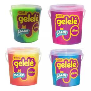 Embalagem Balde Doce Brinquedos Slime Color Gelelé 457g 2 Cores Azul e Verde