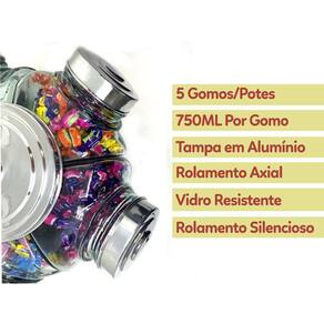 Super porta doce baleiro grande giratório 5 potes - baleiro artesanal + ( mini-baleiro fusquinha ) ideal para presentear/decorar Ideal para comércio - grande capacidade de 3.5 kg de balas e doces Baleiro artesanal com visual retrô atende a todos os tipos de consumidores ávidos por produtos diferenciados e ao mesmo imunes ao tempo.Podendo ser usado em estabelecimentos e em sua própria residência como item de decoração na sala, sala de estar, salão de festas,etc.. Com vidro transparente para ver todos os itens que colocar dentro: Balas, doces e até cápsulas de café. Produto 100% artesanal e com acabamento diferenciado e resistente. Obs: as pequenas imperfeições, tais como irregularidades na espessura, no peso ou no diâmetro e as pequenas bolhas, que às vezes se formam dentro do vidro, são a clara garantia de um produto feito artesanalmente. Ficha técnica: - baleiro de vidro grande giratório 05 potes - vidro transparente - capacidade 700 ml por gomo/pote- rolamento axial- tampa em aluminio - base super firme e segura com rolamento - cor: prata ( aluminio ) Dimensões do baleiro: - altura 25 cm- diametro total 40 cm- diametro da boca 9 cm Itens inclusos: Baleiro giratório grande de aluminio + mini baleiro fusquinha Marca: Houme