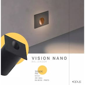 Indicado para iluminação e destaque de jardins, fachadas, escadas, estacionamentos dentre outras aplicações. Alto fator de potência e resistência faz com que este seja um dos melhores refletores do mercado. Além de contar com ip65 índice de proteção ideal para ambientes externos com variações climáticas. Informações Técnicas Marca: Opus Tempo de Despacho: Em até 15 Dimensões: 48x48x65mm Temperatura de Cor: 3000K Fluxo Luminoso: 56lm Ângulo: 56° Potência: 2W Tensão: Bivolt Frequência: 60Hz Fator de Potência 0.5 Corrente Máxima: 0.035A Temperatura de Operação -20°C a 40°C Descrição: Mantenha seus corredores e escadas bem iluminados e seguros com a série Vision. Índice de Proteção: IP65 1 ano após o recebimento do produto Marca: Não Informado