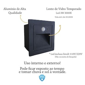 Descrição do balizador: - Material: Alumínio de alta qualidade - Led integrado incluso - Led: Vidro Temperado - Cor: Preto fosco texturizado