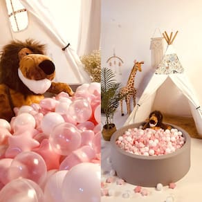 Sobre nós O que torna nosso produto único? Sempre implementamos o conceito de "mais seguro, científico e mais elegante". Nossos produtos são seguros primeiro, Sempre nos certificamos de que são seguros para crianças. Com cores específicas, combinamos bolas exclusivas e coloridas para encher cercadinho ou piscina infantil. Características: Material: Plástico Quantidade: 100 peças Diâmetro: Bolas redondas 2,16" / 5,5 cm; Star Balls 2,55" / 6,5 cm O melhor pacote divertido para crianças! Descrição: Desfrute de horas de diversão sem fim com nosso conjunto de bolas redondas de estrelas de 100 peças! Deixe a imaginação do seu filho correr selvagens enquanto brincam e criam neste mundo emocionante e colorido. Materiais seguros, aprovados pela mãe! Fique tranquilo, nossas bolas de plástico são feitas de materiais não tóxicos e sem grafite. Assim, você pode se sentir confiante enquanto seus pequenos gostam de brincar com eles. Delícia do oceano estrelado! Descrição: Esta combinação única de estrelas e bolas redondas transforma qualquer espaço de jogo em uma aventura submarina mágica. As cores e formas vibrantes cativarão os sentidos do seu filho e melhorarão sua experiência de brincadeira. Tempo de diversão interno e externo! Seja na caixa de bolas, na piscina ou durante uma festa de aniversário, nossas bolas de estrela são perfeitas para ambientes internos e brincadeiras ao ar livre. São fáceis de transportar e armazenar, tornando-as a escolha para diversão em movimento. - Bolas de plástico aprovadas pelo bebê para poços de bolas: os brinquedos de bolas de plástico são feitos com material sem grafite e não tóxico. Sem cheiro de plástico. Bolas redondas medindo 5,5 cm de diâmetro, bolas de estrela medindo 6,5 cm de diâmetro, bom tamanho e seguras para bebês, evitam asfixia por engolir acidentalmente. - Bolas de vedação avançadas – Nossa tecnologia avançada de vedação e enchimento de ar oferece uma bola de plástico à prova de esmagamento e durável. Aperte a bola e ela pode simplesmente voltar à forma regular. - BRINQUEDOS PERFEITAMENTE PARA CRIANÇAS: Ótimas bolas de brinquedos infantis para encher poços de bola, casa de salto infantil, tendas de brincar, túnel de engatinhar, casa de brinquedo, piscina, banheira, interior ou exterior. Perfeitamente como decoração de festa, acessórios de decoração de surpirse. - Toque confortável: bordas lisas para toque confortável das crianças, elas são polidas turbo ao redor das bordas das bolas de jogo para uma limpeza. - MAIS APLICAÇÃO: as bolas de boxe podem ser usadas em bebês praticando agarrar, segurar, arremessar, atirar uma cesta de basquete infantil. As crianças podem brincar de escolher cores, contar, agrupar.