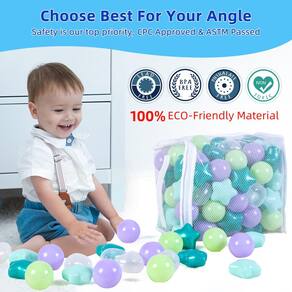Características: 1. Material de alta qualidade, não tóxico, sem cheiro. Livre de ftalatos e BPA. 2. Perfeito para ambientes internos ou externos. 3. As bolas de brincar ajudam a desenvolver a coordenação olho-mão e promover atividades físicas. 4. Você também pode cultivar a percepção da cor das crianças. 5. Jogue bolas de boxe com barraca, cercadinho de brinquedo. Especificações: 1. Material: PE 2. Quantidade: 100 peças 3. Diâmetro: Bolas: 2,2" /5,5 cm Estrelas: 6,5 cm (o lado mais longo) 4. Cor: roxo claro, roxo pérola, azul claro, azul claro, rosa claro 5. Peso: 3 g (individual) A embalagem inclui: 100 bolas de plástico - Não tóxico e inofensivo, 100 estrelas e bolas livres de ftalatos; livre de BPA; livre de plástico de grafite e não PVC, certificação recomendada para idade 0+ - ??O diâmetro de cada bola é de 5,5 cm e 6,5 cm (o lado mais longo), o que é muito adequado para crianças. Cores brilhantes fascinam as crianças, brincam, contam e modelam jogos. Bolas de plástico podem melhorar as habilidades sensoriais e de coordenação das crianças. - É muito adequado para encher qualquer poço de bolas, barraca de brincar, sala de jogos, piscina de bebê, cerca de brincar e sala de balanço. Ideal para poços de bolas de bebês ou crianças, piscinas infantis, cercas internas e festas, brinquedos de banho de bebê. A bola não tem bordas ásperas para proteger os dedinhos. Fácil de manter limpo, parece fresco e interessante. - A mais recente combinação de cores lavanda, verde pérola, verde menta, verde macaron, transparente, obtenha estrelas e bolas de uma só vez, cores versáteis, adequadas para complementar qualquer piscina de bolas coloridas, e também é muito bom para combinar com outras bolas de boxe. - ? Bolsa de PVC/malha : uma bolsa resistente e reutilizável que pode armazenar todas as bolas do oceano e colocá-las juntas para liberar espaço de vida. Compre agora! Se você tiver alguma dúvida que o deixe insatisfeito com nossos produtos, a tempo de lidar com isso para você, e ficaremos satisfeito!