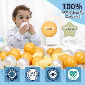 Características: 1. Material de alta qualidade, não tóxico, sem cheiro. Livre de ftalatos e BPA. 2. Perfeito para ambientes internos ou externos. 3. As bolas de brincar ajudam a desenvolver a coordenação olho-mão e promover atividades físicas. 4. Você também pode cultivar a percepção da cor das crianças. 5. Jogue bolas de boxe com barraca, cercadinho de brinquedo. Especificações: 1. Material: PE 2. Quantidade: 100 peças (50 bolas + 50 estrelas) 3. Diâmetro: Bolas: 2,2" /5,5 cm Estrelas: 6,5 cm (o lado mais longo) 4. Cor: Macaron 5. Peso: 3 g (individual) A embalagem inclui: 100 bolas de plástico + estrelas - Não tóxico e inofensivo, 100 estrelas e bolas livres de ftalatos; livre de BPA; livre de plástico de grafite e não PVC. Nosso certificado recomenda a partir de 0 anos - O diâmetro de cada bola é de 5,5 cm e as estrelas: 6,5 cm (o lado mais longo), o que é muito adequado para crianças. Cores brilhantes fascinam as crianças, brincam, contam e modelam jogos. Bolas de plástico podem melhorar as habilidades sensoriais e de coordenação das crianças. - É muito adequado para encher qualquer poço de bolas, barraca de brincar, sala de jogos, piscina de bebê, cerca de brincar e sala de balanço. Ideal para poços de bolas de bebês ou crianças, piscinas infantis, cercas internas e festas, brinquedos de banho de bebê. A bola não tem bordas ásperas para proteger os dedinhos. Fácil de manter limpo, parece fresco e interessante. - As mais recentes combinações de macaron, obtenha estrelas e bolas de uma só vez, cores versáteis, adequadas para complementar qualquer piscina de bolas coloridas, e também é muito bom para combinar com outras bolas de boxe. - ? As bolas de bola são o presente perfeito para seus filhos ou amigos. (Presente para aniversário, Natal ou festival especial.)