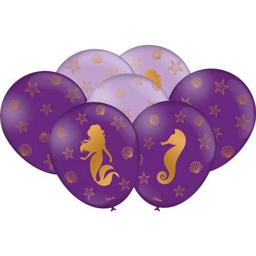 Balão Personalizado Tema Sereia-Foto Ilustrativa , pois os Balões possuem apenas nas duas cores, Roxo e Preto com detalhes Dourados -Cor dos Balões: Roxo e Preto com os detalhes Dourado -Tamanho: ( 9 )-Material: Látex -Embalagem: 25 Unidades por Pacote Produto lacrado e de Alta Qualidade