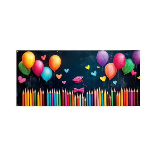 Material: poliéster Tamanho: 150 cm × 210 cm Peso: 230 g Design criativo de formatura: apresenta balões vibrantes, lápis coloridos e elementos de formatura, criando um cenário alegre para festas escolares e celebrações marcantes. Tecido de poliéster durável: feito de material de poliéster premium, leve e resistente, adequado para uso interno e externo. Cenário de festa perfeito: ideal para cerimônias de formatura, eventos em sala de aula, banners de portas de garagem ou como decoração de parede para momentos fotográficos memoráveis. Tamanho de tela grande: mede 150 x 210 cm, oferecendo ampla cobertura para melhorar a atmosfera de sua festa sem sobrecarregar o espaço. Configuração fácil: bordas reforçadas com ilhós facilitam a fixação em paredes, cercas ou portas, garantindo uma instalação rápida para sua celebração.