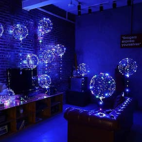 5. [Fácil de usar] - Para ativar o balão de bolhas de LED e fazê-lo brilhar no escuro, encha o balão com ar ou hélio e, em seguida, coloque 2 baterias na caixa da bateria.