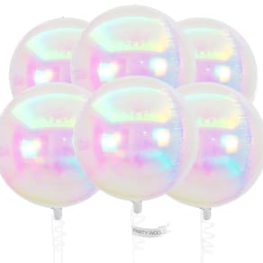 Balões iridescentes PartyWoo Foil, 6 balões redondos de alumínio de 22 polegadas, balões e fitas gigantes de alumínio 4D, balões grandes de mylar, balões para decorações de aniversário, decorações de casamento, decorações de festa