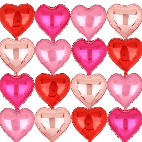 Por que escolher GGDE? - ?Lista de embalagem? 16 peças de balões de coração coloridos diferentes: vermelho, rosa vermelho, rosa, ouro rosa. - ?Uso?Fácil e conveniente de inflar e esvaziar. Aperte a entrada de enchimento após a conclusão da inflação. A saída de ar será selada automaticamente por sua cola autoadesiva correspondente das entradas dos balões. Feitos de material de folha de alumínio de alta qualidade, nossos balões de coração são duráveis e duradouros. - ?Presentes especiais? Balões de coração ótimos para decorações de festa do dia dos namorados, decoração de corredor de casamento, festa de aniversário, despedida de solteira, chá de panela, aniversário de casamento, chá de bebê, etc. Adequado para vários temas de festa e ocasiões. Adicione uma poderosa mensagem de amor e carinho às suas celebrações.