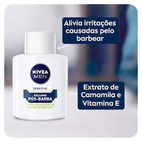 Para que serve o Loção Bálsamo Pós Barba Nivea Men Sensitive? Fórmula sem álcool, ideal para peles sensíveis. Enriquecido com Camomila e Hamamelis, dois ingredientes que hidratam, acalmam e cuidam da pele.
