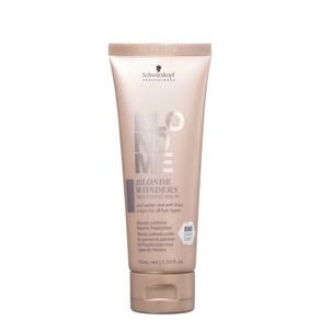 Bálsamo Restaurador Schwarzkopf Blondes Wonders BlondMe 75ml Leave-in bálsamo restaurador para cabelos loiros ou descoloridos. Schwarzkopf Professional BlondMe Blonde Wonders com efeito anti-frizz e proteção térmica para fios que necessitam de reparação de pontas. O Bálsamo Restaurador Schwarzkopf Professional BlondMe Blonde Wonders conta com a tecnologia Bond Creation 3D, que ajuda a criar novas pontes, previne a quebra, reduz o frizz e sela as pontas espigadas deixando o cabelo suave e brilhante. Também tem filtro UV que protege os fios da exposição ao sol. Fios livres de frizz e com proteção térmica e UV. Conselho de Aplicação Coloque uma pequena quantidade do bálsamo cabelo seco com toalha para desembaraçar instantaneamente. Também pode ser no cabelo seco para um toque final. Não enxaguar.. Marca: Não Informado Ean: 6015224587996