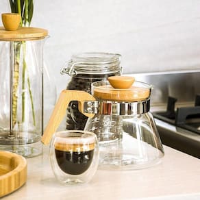 Balzac Cafeteira 12x18x18cm 600ml Borosilicato Transp Tampa Madeira