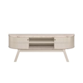 Características: Estrutura em MDP Pintura com acabamento UV 02 Portas flexíveis em MDF Puxadores Poliestireno Cromado Pés Palito Tampo e Base com Detalhes Curvos Suporta TVs de até 75"