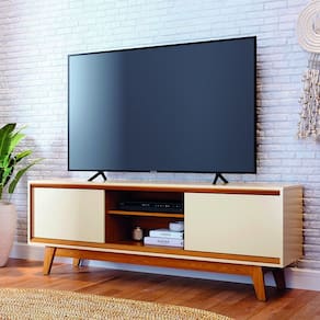 Características: Estrutura em MDP Pintura semi brilho Portas deslizantes Pés Usinados Espaço para TV até 65 Polegadas.