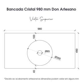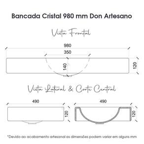 Dê um toque de luxo ao seu banheiro com a bancada de banheiro com cuba esculpida redonda cristal da don artesano. Fabricada em superfície sólida mineral, é durável, resiste a manchas e é fácil de limpar. Suave ao toque e com acabamento impecável, ela transforma qualquer ambiente em um espaço exclusivo e refinado A bancada risca O material é resistente a abrasão, mas caso ocorra algum risco, é possível remover facilmente utilizando o lado áspero da esponja. A bancada mancha Por ser um material não poroso, a ssm não vai absorver manchas. Se algum líquido secar sobre a superfície, é possível remover a sujeira com uma limpeza diária. No entanto, recomendamos que evite deixar líquidos secarem na bancada. Como limpar a bancada A limpeza diária pode ser feita usando detergente, uma esponja multiuso e um saponáceo cif , esfregando o lado áspero da esponja em movimentos circulares. Com isso é possível remover a maioria das sujeiras. Se precisar fazer uma limpeza mais pesada, pode ser Utilizado água sanitária ou cloro. Lembre-se de enxaguar bem para remover os produtos químicos após a limpeza. Pode usar água quente Para garantir a durabilidade, é importante evitar o apoio de objetos muito quentes na superfície da bancada, e ao despejar líquidos quentes, abrir a água em temperatura ambiente para evitar o choque térmico. Especificações Marca: don artesano Modelo: cristal100 Material: superfície sólida mineral Dimensões da bancada: 100 x 49 x 12 cm Acabamento: acetinado Furação da válvula: padrão Peso da bancada: 16,8 kg As dimensões podem variar em alguns milímetros devido ao acabamento artesanal. Marca: Não Informado