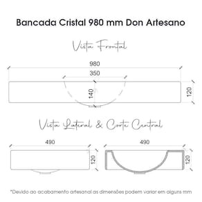 Dê um toque de luxo ao seu banheiro com a bancada de banheiro com cuba esculpida redonda cristal da don artesano. Fabricada em superfície sólida mineral, é durável, resiste a manchas e é fácil de limpar. Suave ao toque e com acabamento impecável, ela transforma qualquer ambiente em um espaço exclusivo e refinado A bancada risca O material é resistente a abrasão, mas caso ocorra algum risco, é possível remover facilmente utilizando o lado áspero da esponja. A bancada mancha Por ser um material não poroso, a ssm não vai absorver manchas. Se algum líquido secar sobre a superfície, é possível remover a sujeira com uma limpeza diária. No entanto, recomendamos que evite deixar líquidos secarem na bancada. Como limpar a bancada A limpeza diária pode ser feita usando detergente, uma esponja multiuso e um saponáceo cif , esfregando o lado áspero da esponja em movimentos circulares. Com isso é possível remover a maioria das sujeiras. Se precisar fazer uma limpeza mais pesada, pode ser Utilizado água sanitária ou cloro. Lembre-se de enxaguar bem para remover os produtos químicos após a limpeza. Pode usar água quente Para garantir a durabilidade, é importante evitar o apoio de objetos muito quentes na superfície da bancada, e ao despejar líquidos quentes, abrir a água em temperatura ambiente para evitar o choque térmico. Especificações Marca: don artesano Modelo: cristal100 Material: superfície sólida mineral Dimensões da bancada: 100 x 49 x 12 cm Acabamento: acetinado Furação da válvula: padrão Peso da bancada: 16,8 kg As dimensões podem variar em alguns milímetros devido ao acabamento artesanal. Marca: Não Informado