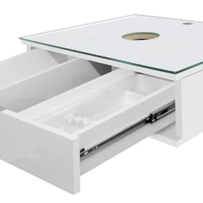 Produto fabricado em MDF e MDP BP (1,5cm), com puxador de alumínio anodizado e tampo de vidro temperado com furo, para torneira fixada na bancada. Possui furação com 45mm de diâmetro para fixar a cuba com a válvula e sifão. Acompanha suportes e cantoneiras de ferro para sustentação da bancada. Gaveta com higiênico organizador de escovas e produtos dentais (removível e lavável). Produto sai montado de fábrica, devidamente regulado, bastando apenas fixá-lo na parede. Acompanha buchas de nylon parafusos para fixação na parede. Possui manual de instalação. Acompanha Manual de Instalação: Sim Altura: 28 cm Ambiente Principal: Banheiro Comprimento: 60 cm Cor: Branco Cor do Produto: Branco Economizador: Não Formato do lavatório: Retangular Furos para aplicação de metais: 2 Itens Inclusos: 1 Bancada e 1 Cuba de Apoio Largura: 51 cm Lavatório para canto: Não Linha: Blu Linha ou Coleção: Blu Manual de Montagem e Instalação: https://product-hub-prd.madeiramadeira.com.br/956557/documents/5180b49f-3b84-4661-bdee-efd2c732beec2428298348617281364113778.pdf Marca: Bumi Origem do Produto: Nacional Peso: 14,7 kg Possui coluna: Não Recomendações de Uso, Manutenção e Limpeza: Nunca utilizar produtos químicos / Use somente flanela levemente umedecida em água e em seguida uma outra seca e macia / Caso ocorra vazamento ou acúmulo de água no produto, enxugar imediatamente. Tamanho do Gabinete: Médio: de 60cm a 80cm de largura