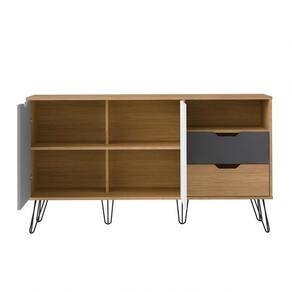 Bancada Buffet Estocolmo Carvalho/Grafite/Branco/Prata 2 Portas 2 Gavetas Usinadas 6 Pés em Metal - Artely