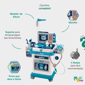 Carrinho de Médico Brinquedo Infantil Doctor Center com 37 Peças - Maxi Toys Transforme a brincadeira em aprendizado com o Carrinho de Médico Infantil Doctor Center da Maxi Toys Ideal para crianças a partir de 3 anos, este brinquedo educativo estimula a imaginação, desenvolve empatia e ensina noções básicas sobre cuidados com a saúde. Equipado com 37 acessórios de médico realistas, este brinquedo é um verdadeiro centro de atividades que convida os pequenos a mergulhar em um mundo de descobertas. Entre os destaques, está o termômetro, que emite som dando um toque ainda mais real à brincadeira. Estetoscópio, tesouras, pinças, seringas, monitor, medidor de altura, película plástica de Raio-X, entre outros, não poderiam faltar nesta brincadeira. Tudo isso em um design funcional e fácil de montar, com abertura frontal e compartimentos organizadores para guardar todos os instrumentos com praticidade e 4 rodinhas para fácil movimentação. Indicado para crianças a partir de 3 anos. Certificado pelo INMETRO, o produto garante toda a segurança necessária para o uso infantil, permitindo que pais e responsáveis fiquem tranquilos enquanto os pequenos se divertem. Perfeito para presentear em qualquer ocasião especial. O Carrinho de Médico Doctor Center da Maxi Toys é de sorrisos e muitas horas de diversão educativa. Principais Características: - Idade Recomendada: A partir dos 3 anos - 37 Acessórios de médico realistas - 4 Rodas para movimentação - Termômetro que emite som - Porta frontal - Design funcional - Combina diversão e aprendizado em uma única caixa - Ajuda a exercitar o cérebro das crianças - Cores vibrantes e atrativas - Estimula a habilidade prática das crianças - Pequenos suportes laterais para organização - Promove um brincar educativo. - Fácil de montar - Requer 2 pilhas AA Não Inclusas - Produto certificado pelo INMETRO Especificações Técnicas: - Conteúdo da Embalagem: 1 Carrinho de Médico + Acessórios + Manual de Instrução - Composição/Material: ABS e PP - Dimensões do produto aberto: A: 53 cm x L: 43 cm x P: 25 cm aprox. - Peso: 2,5 kg bruto - : 90 Dias Contra Defeito de Fabricação Pelo Fabricante - Certificação: 004346/2023 - Código do Fabricante: 21857 - EAN: 7899403218579 - Marca: Maxi Toys Imagens meramente ilustrativas. As cores e estampas podem variar de acordo com o lote do fabricante. Homologação Inmetro: 00763/2021-BRINQ-1 Marca: Não Informado Ean: 7899403218579