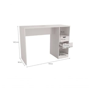 Acabamento: Pintura Touch | Acabamento da Fita Borda: Papel | Cor: Branco | Corrediças: Telescópicas | Garantia: 3 meses para defeito de fabricação | Matéria-prima: MDF | Peso suportado por cada gaveta: 6 Kg | Peso suportado por cada prateleira: 7 kg | Quantidade de gavetas: 2 | Quantidade de prateleiras: 1 | Sistema de montagem: Parafuso Philips