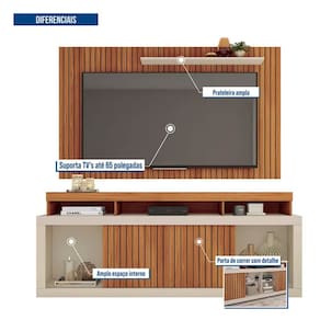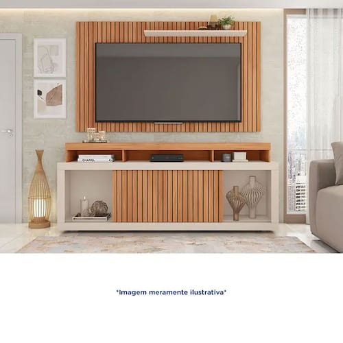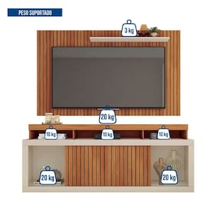 Versátil! Construída com um tamanho ideal, o produto possui capacidade para acoplar TVs de até 65 polegadas, contando com um suporte de peso com até 50 kg. Além disso, tem sua estrutura em MDP, com acabamento em pintura UV, que são materiais de altíssima qualidade, onde proporcionam ainda mais qualidade e durabilidade ao painel. Sem contar também que o produto apresenta 2 portas deslizantes e também 5 nichos com um amplo espaço, agregando maior versatilidade e permitindo a decoração do produto conforme desejar.