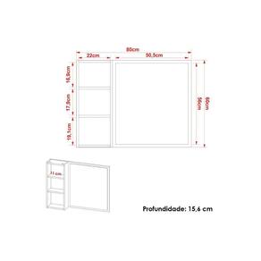 Dimensões(Cm): Comprimento(Profundidade): 15,6cm x Largura: 80cm x Altura: 60cm Material de Estrutura - Estrutura em MDP/BP Tipo de Pintura - Pintura em UV (Ultravioleta) Vantagens Extra dos Móveis de Banheiro e Lavanderia - Possui Espelheira Tipo de Portas - Portas De Bater Quantidade de Portas - 1 Porta de Abrir Tipo de Dobradiças - Dobradiças Metálicas Quantidade de Prateleiras - 2 Prateleiras Garantia - Garantia de 90 dias Certificação de Qualidade - Qualidade Aprovada