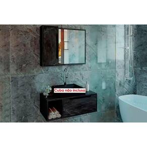 Gabinete de Banheiro Suspenso BN3644 s/ Cuba c/ 1 Porta 80cm Mármore Lunar - Tecno Mobili