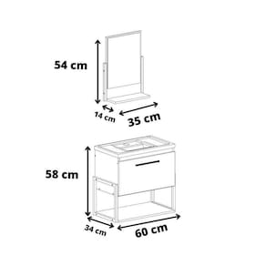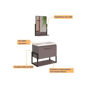 Material de Estrutura - Estrutura 100% MDF - BP Liso - Metalon Tipo de Pintura - Pintura Eletrostática a Pó Tipo de Acabamento da Pintura - Pintura Fosco Vantagens Extra dos Móveis de Banheiro e Lavanderia - Possui Espelho - Sim Material da Cuba - Cuba em Mármore Sintético