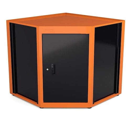 Estrutura em chapas de aço conformadas. 1 porta com abertura de 100. Tranca para a porta. Pintura eletrostática. Capacidade de carga máxima distribuída: 800 Kg. Capacidade de carga distribuída da prateleira: 60 Kg. Espessuras das chapas do corpo: 1,2 mm. Espessuras das chapas da porta: 0,9 mm. Compatível com os Tampos Tramontina PRO 44954/025, 44954/026 e 44954/027.Utilizado para armazenamento de ferramentas e base de trabalho para manutenção de peças, Com prateleira interna para melhor acomodação das ferramentas, Com 5 pés para regulagem de altura, para compensar irregularidades no piso, Capacidade de carga e resistência da estrutura comprovadas através de testes práticos. Específico para montagens em cantos com ângulo de 90.