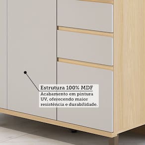 Material Balcao com Tampo: Corpo em MDF 15mm, frontal em MDF 18mm, tampo em MDF 25mm, com acabamento em Pintura UV.