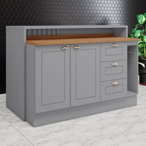 O(a) Bancada de Cozinha Kit Ilha Gourmet Americana 2 Portas 3 Gavetas Ripado Nature/Cinza - Henn é produzido em MDF na escala de brilho Fosco, e possui um grau de dificuldade de montagem: Médio.