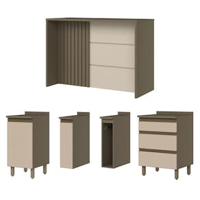 O(a) Bancada de Cozinha Kit Ilha Gourmet Condi Connect 2 Portas 3 Gavetas Ripado Duna/Cristal - Henn é produzido em MDF na escala de brilho Fosco, e possui um grau de dificuldade de montagem: Médio.