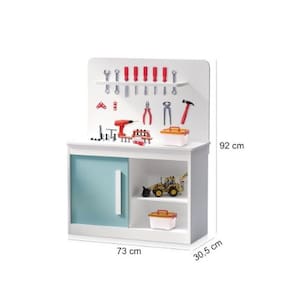 Com a Bancada de Ferramenta a diversão é garantida. Ela é ideal para estimular a criatividade do seu filho, estimulando a imaginação e o desenvolvimento motor. Sendo Funcional e prática, é ótima para quem curte martelar, pregar, parafusar e construir coisas. Além disso, é compacta e charmosa, combinando com qualquer ambiente da casa, até mesmo na sala.